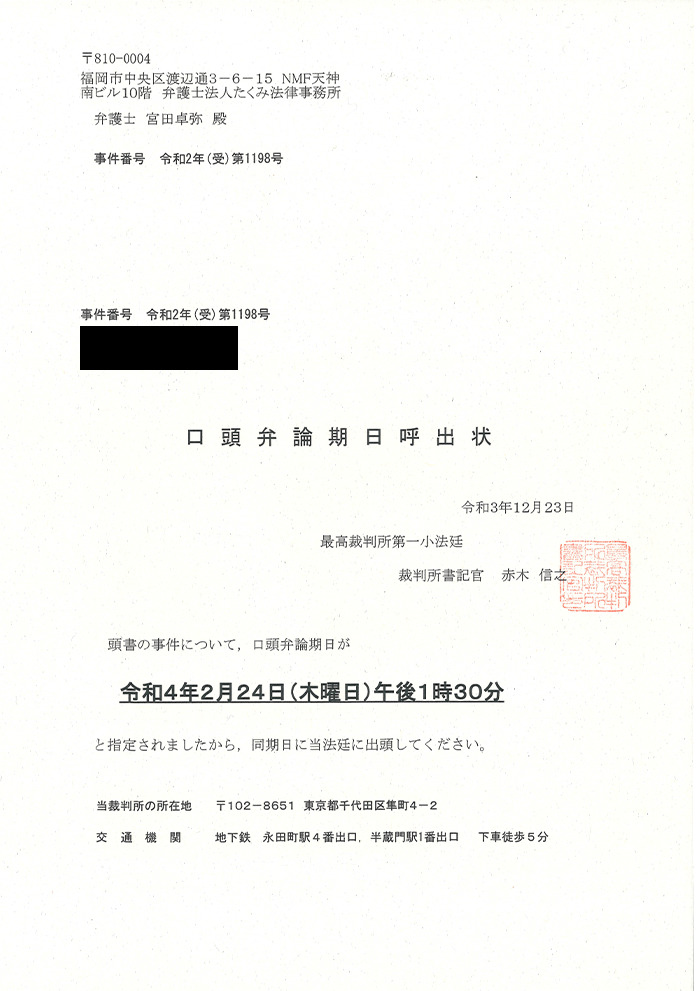 その結果、高いハードルを乗り越え、上告が受理され、最高裁で弁論が開かれることになりました