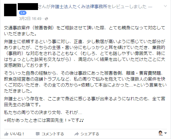 当事務所の公式Facebookページ『匠への道』に寄せられたお客様からのレビューをご紹介します。